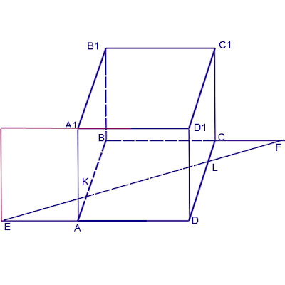 Дан куб ABCDA1B1C1D1 c ребром, равным a. Точка K принадлежит ребру AB, точка L - ребру CD. При этом АК:КВ=1:3, CL:LD=1:4. Проведена прямая KL.
